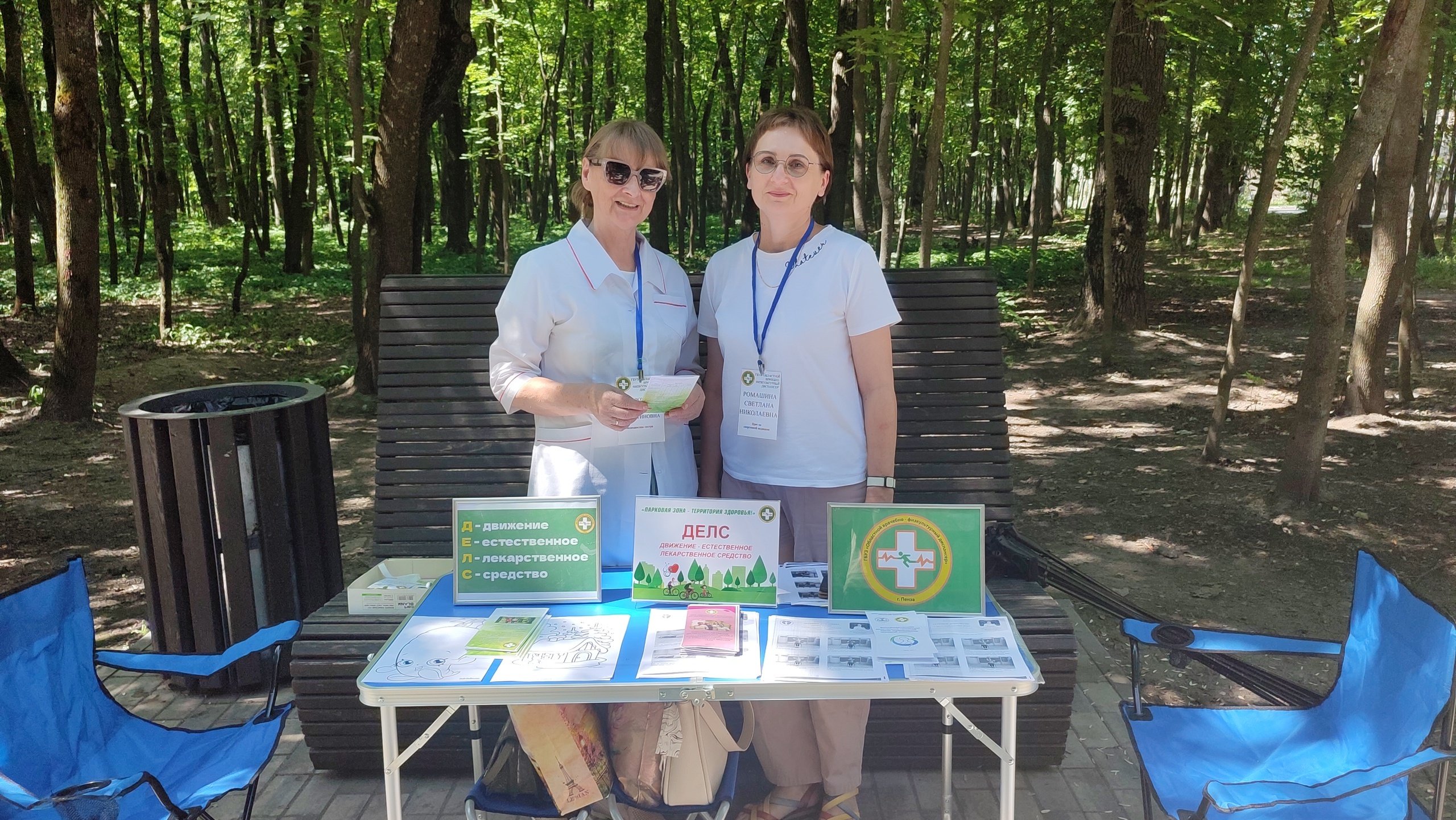 11 июля, на территории Парка "Союз" (Веревочный парк) по адресу: г. Пенза, ул. Попова 30/2в, рамках профилактической акции, врач по спортивной медицине Ромашина Светлана Николаевна, медицинская сестра врача по спортивной медицине Конюхова Татьяна Валентиновна провели мастер-класс физических упражнений:
