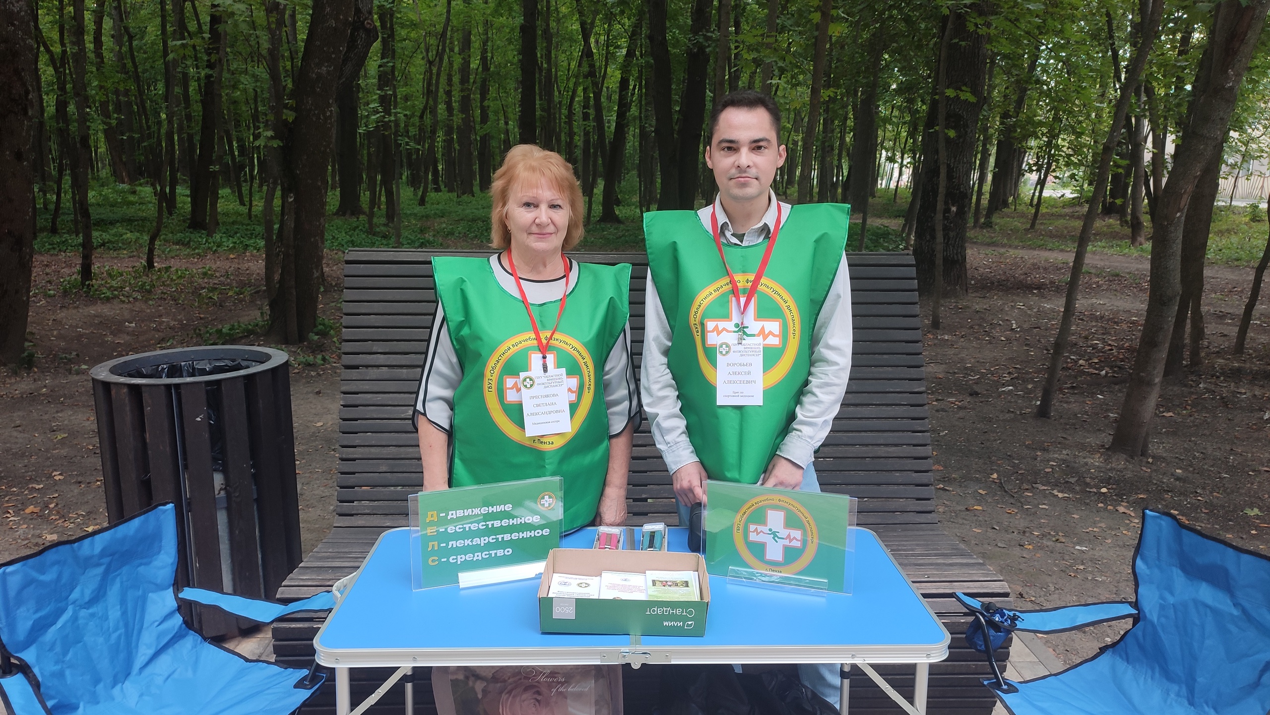22 августа, на территории Парка "Союз" (Веревочный парк) по адресу: г. Пенза, ул. Попова 30/2, в рамках профилактической акции, врач по спортивной медицине Воробьев Алексей Алексеевич, медицинская сестра врача по спортивной медицине Преснякова Светлана Александровна провели мастер-класс физических упражнений: